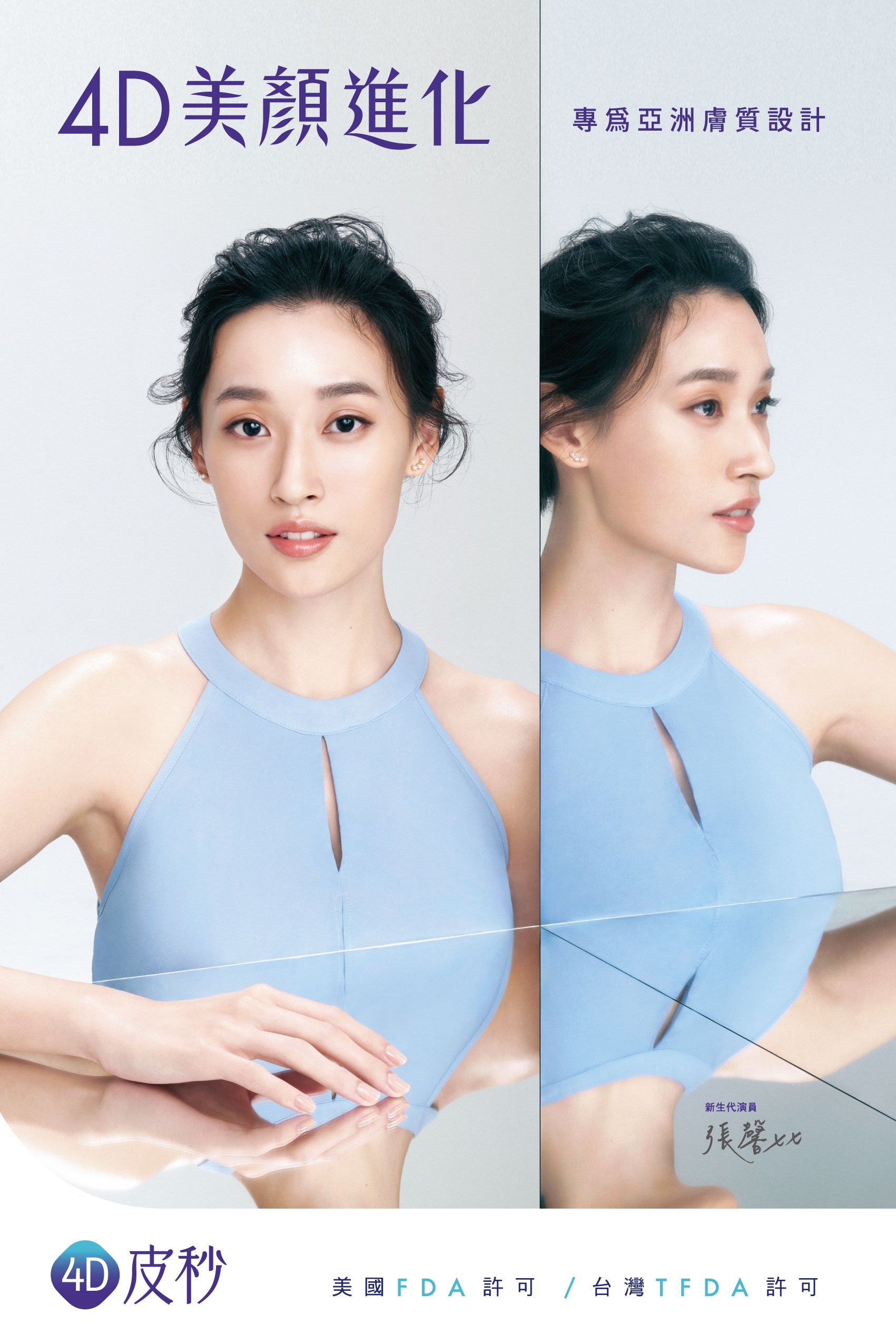 以非侵入式聚焦式超音波探頭,熱能直達真皮層及筋膜層,達到收縮及拉提效果,促進膠原蛋白新生,緊實肌膚彈力